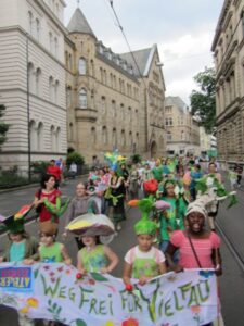 Seit 2004 gibt es im Frauenmuseum Bonn eine eigene Werkstatt für Kinder. Sie organisiert neben dem Schreibwettbewerb auch Führungen, Workshops, Geburtstage, Ferienprogramme und Aktionen wie den „Grünen Zug“. „Viele unserer Projekte haben einen Bezug zur Natur“, berichtet Lucilene Pampolha. Unsere Workshops finden oft im Freien statt, in Parks oder im Wald. Dabei lassen wir uns von Farben und Formen inspirieren und sammeln mit den Kindern Material zum kreativen Gestalten.“