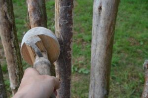 Wie klingt das Holz der Linde oder der Edelkastanie oder der Douglasie? Das kann man an der Klangholz-Station herausfinden, wo dicke Äste von sieben unterschiedlichen Bäumen hängen. Mit einem Holzschlägel schlägt man die Hölzer. Die Traubeneiche etwa klingt scheppernd und dumpf, die Bergulme hat eine tiefe, sonore Stimme. Denkt man an die vielen Musikinstrumente aus Holz, dann weiß man: die Musik kommt aus dem Wald!