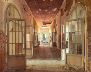 Rodenstock: Zu unserer Wirklichkeit gehört auch Spekulation, genauer Bauspekulation. Auf dem Weg hierher in die Toskana habe ich noch mal Zwischenstation am Gardasee gemacht. Dort habe ich ein beeindruckendes Objekt von „Lost Places“ gesehen: ein Hotelkomplex aus den 20er-Jahren, der seit vielen Jahren leer steht, verkommt und als touristische Attraktion gilt. Es gibt von diesen ungenutzten Objekten zahlreiche.